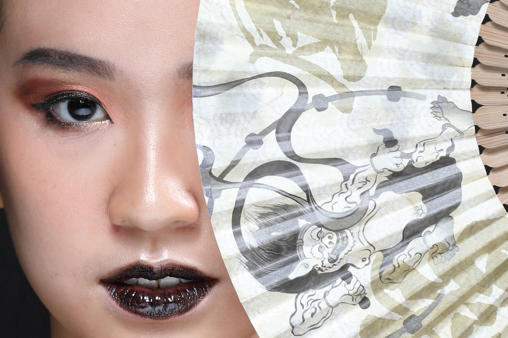 Makeup Asian Woman Model High Fashion Closeup Face Portrait artist