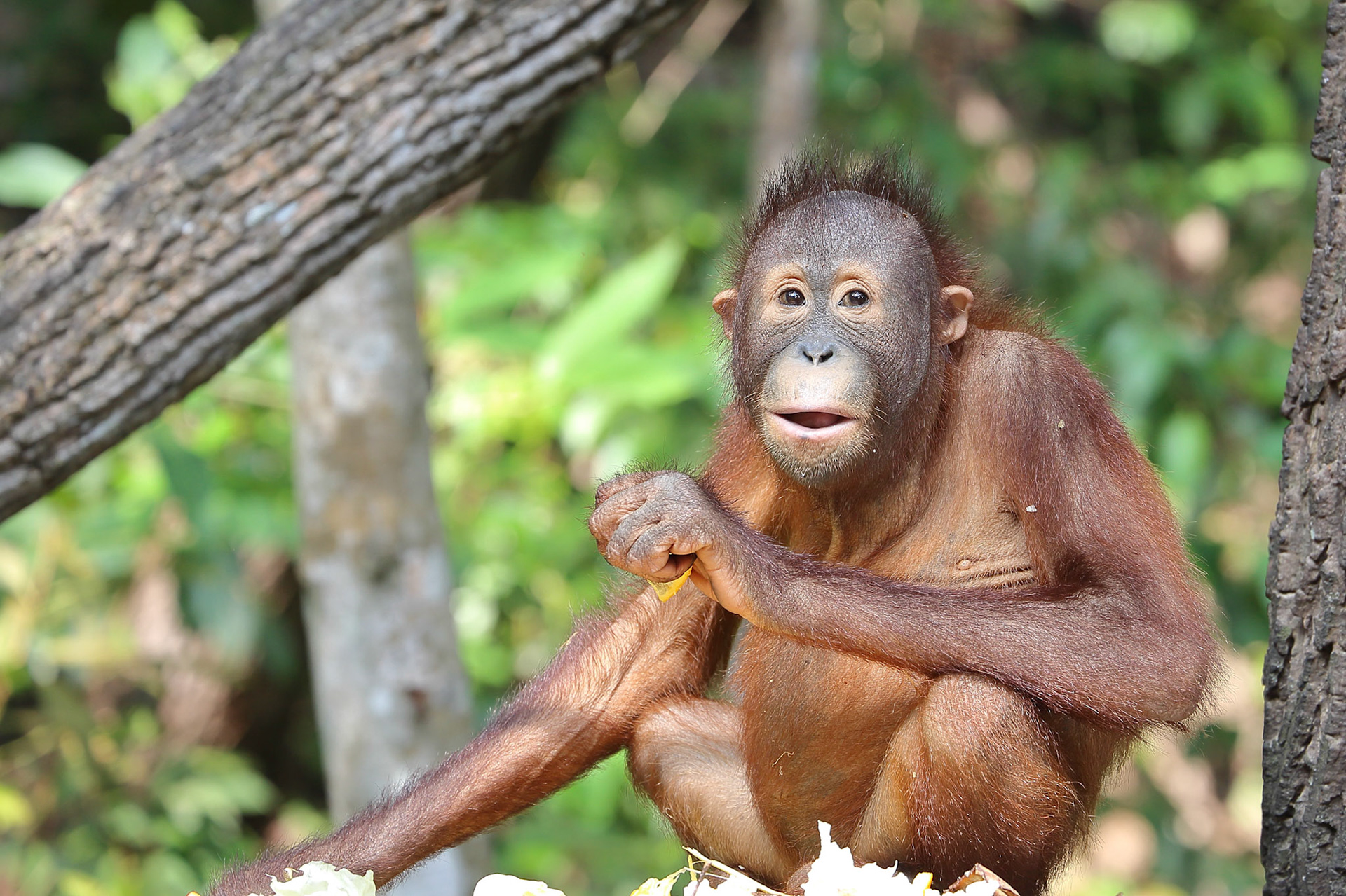 Young beautiful Southeast Asian woman beauty fashion makeup light grey white background holding red apple over eye smile