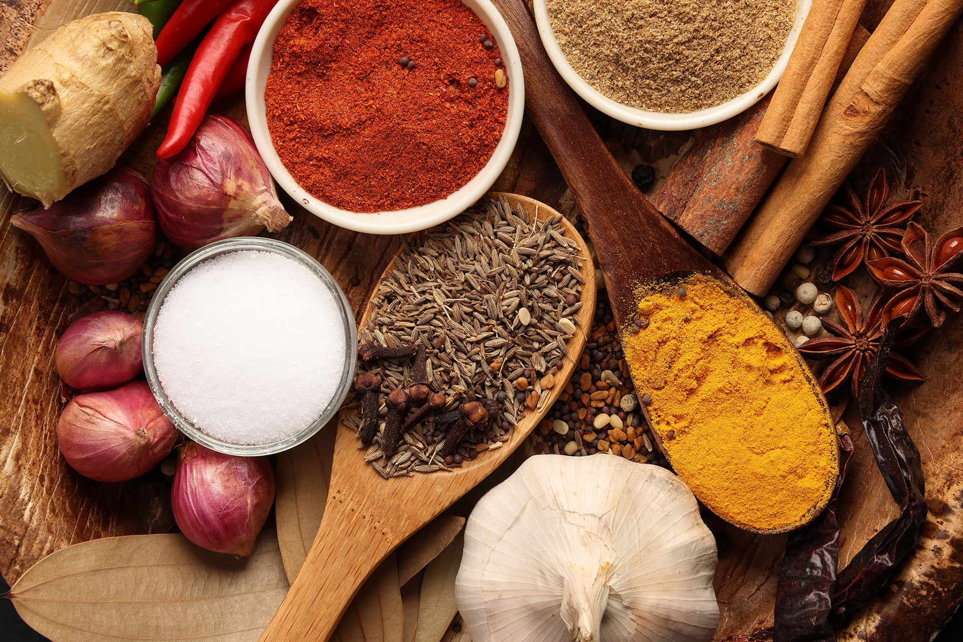 Fresh orange cinnamon star anise clove spice juice in glass on white yellow background
