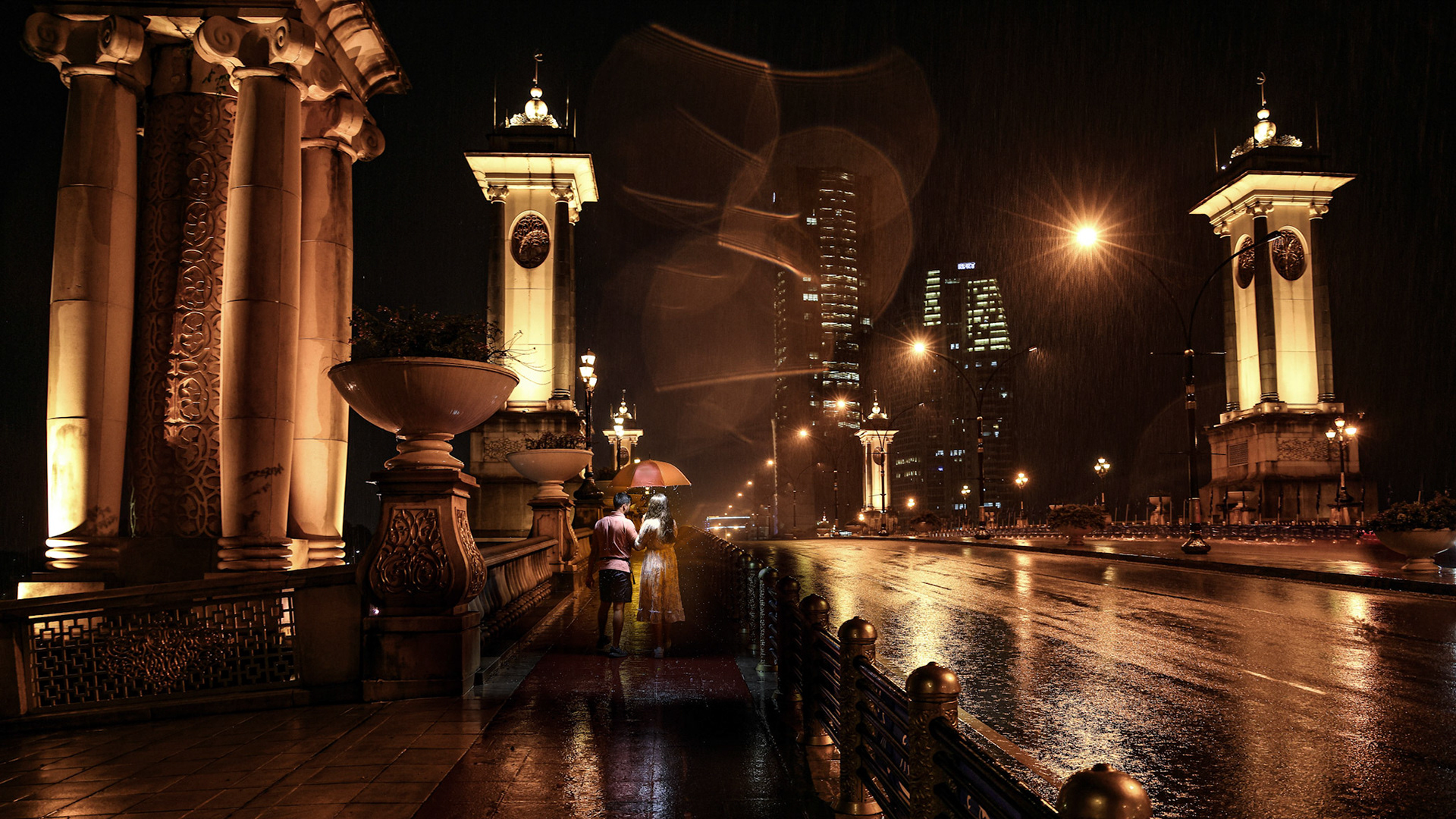 The Seri Wawasan Bridge Putrajaya at night with its reflection on the lake water