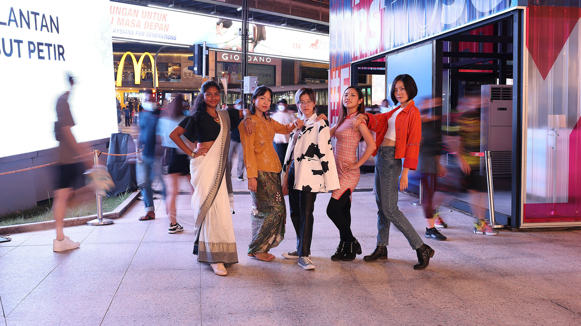 Group of woman Malay Chinese Indian Malaysian hug friends togetherness unity outdoor green park lake nature