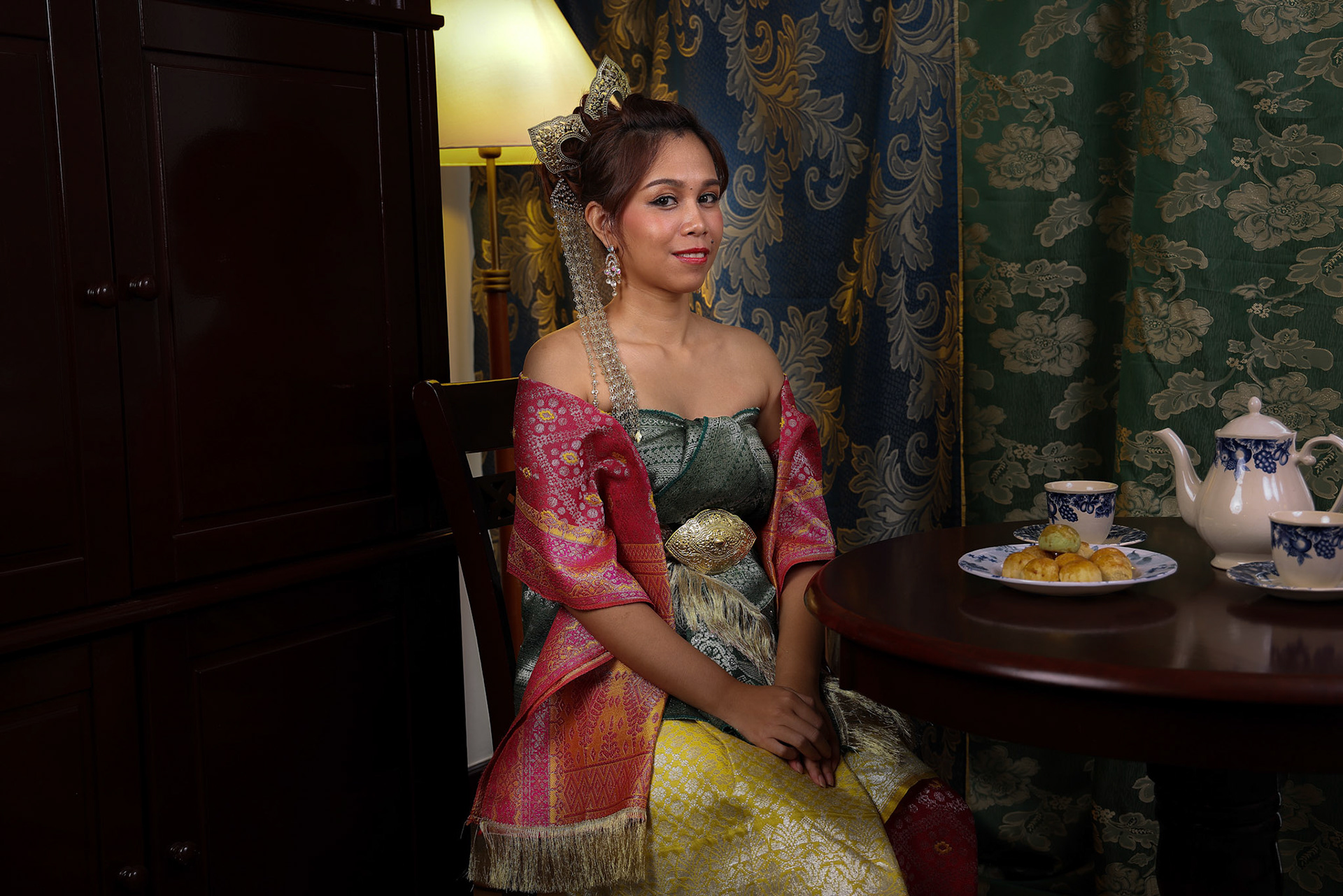 South east Asian Malay Chinese Indian race ethnic origin woman wearing dress costume baju kurung cheongsam samfu kebaya Sharee multiracial community on white background happy smile hug togetherness